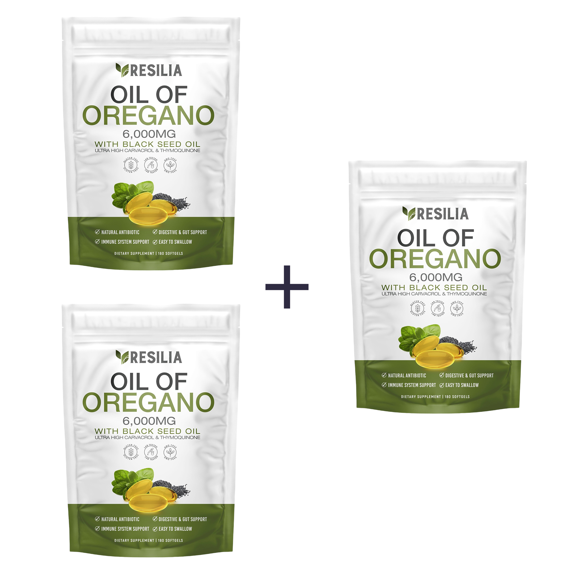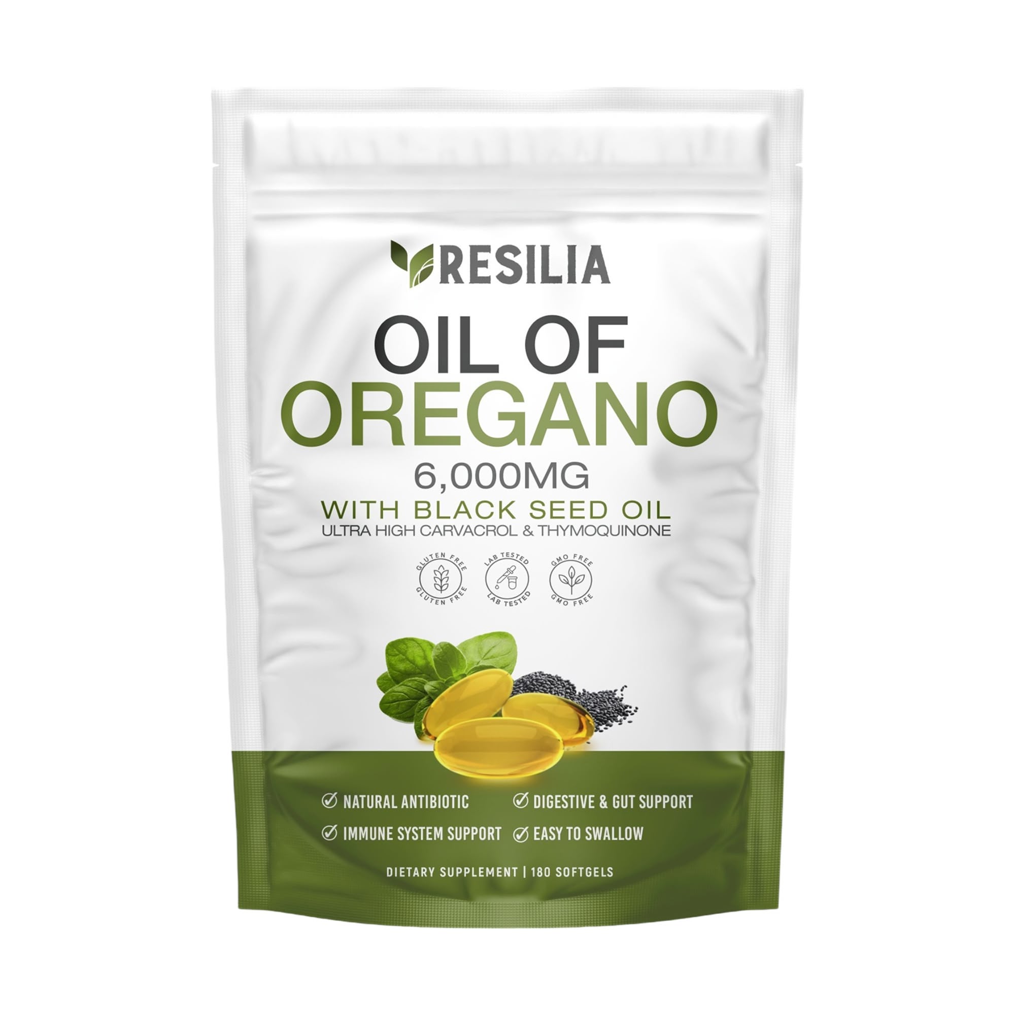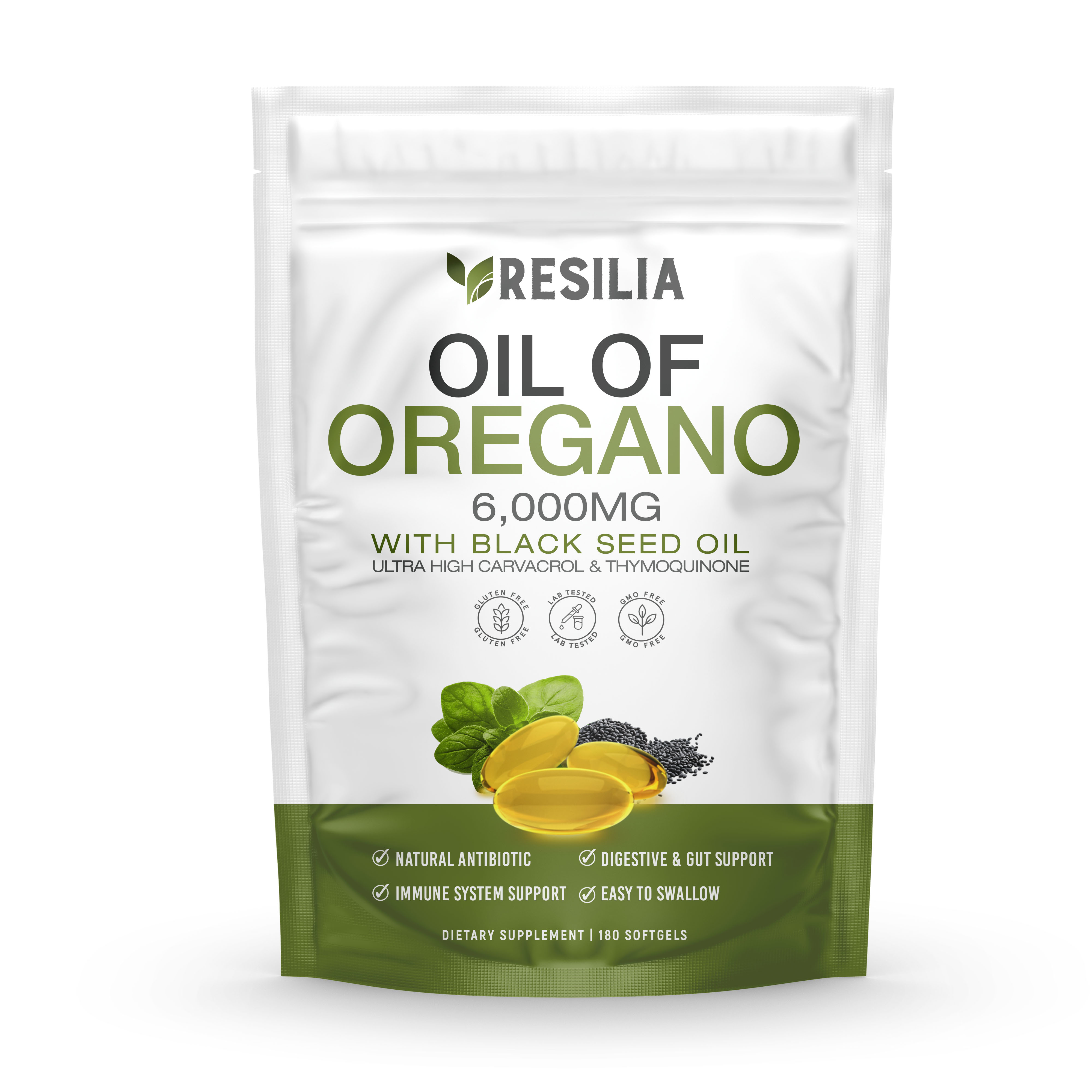 Resilia combines 6,000mg of pure oregano oil with 200mg of black seed oil per serving — two clinically studied ingredients proven to strengthen immunity, fight inflammation, and support digestive balance naturally.